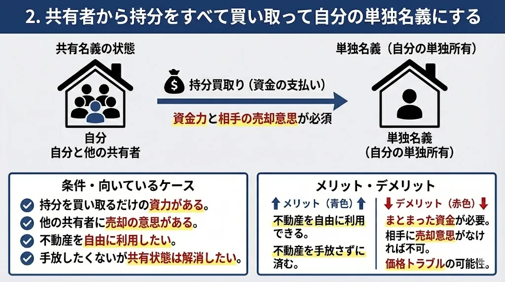 2. 共有者から持分をすべて買い取って自分の単独名義にする