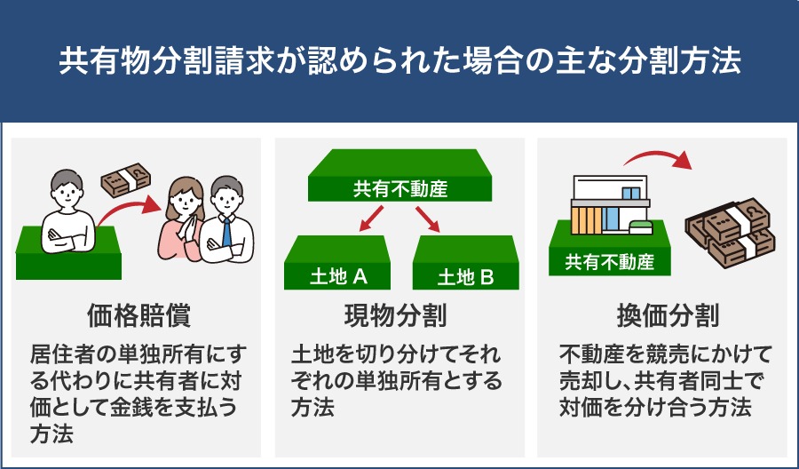 また、不動産全体の売却金額を持分割合に応じて分配する「換価分割」なら、共有者間で不公平が生じないため「分配時にほかの共有者とのトラブルが起きづらい」というメリットもあります。特に、相続で取得した不動産を複数人で分ける場面では有効な方法といえます。