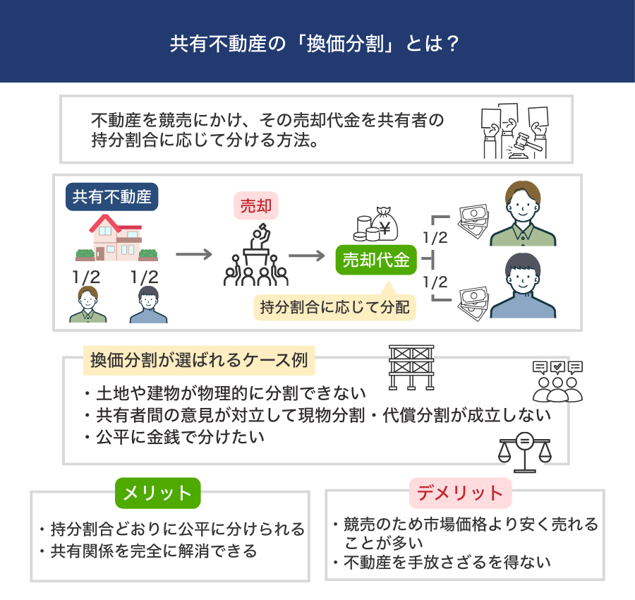| 換価分割 | 共有物を売却して売却益を分割する |