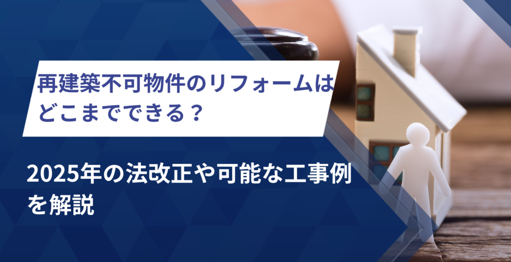 かつては「柱一本を残して建て替えに近い工事を行う」といったグレーな方法が用いられることもありましたが、今回の改正で抜け道(4号特例)がなくなり、実務上はほぼ不可能になりました。結果として、再建築不可物件では大規模なリフォームや増改築はできず、小規模な修繕に限られるのが実情です。