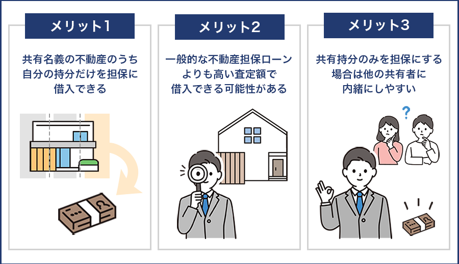 さらに、共有持分のみの担保であれば「共有者に内緒で借入しやすい」などのメリットもあります。そのため、共有名義の不動産を担保に借入したい場合は、まず専門ローンの利用を検討してみるとよいでしょう。
