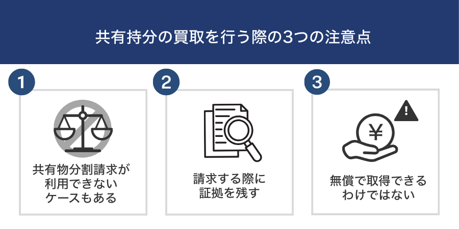 共有持分の買取を行う際は、以下の点に注意しましょう。