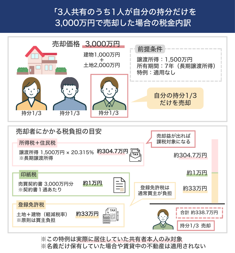 一方、自分の共有持分だけを第三者などに売却した場合は、売却した本人のみが確定申告の対象となります。
