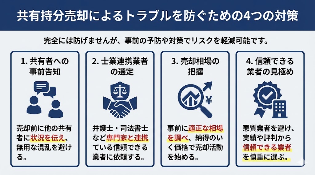 共有持分の売却によってほかの共有者と関係が悪化するのが怖いです。このトラブルは避けられませんか?