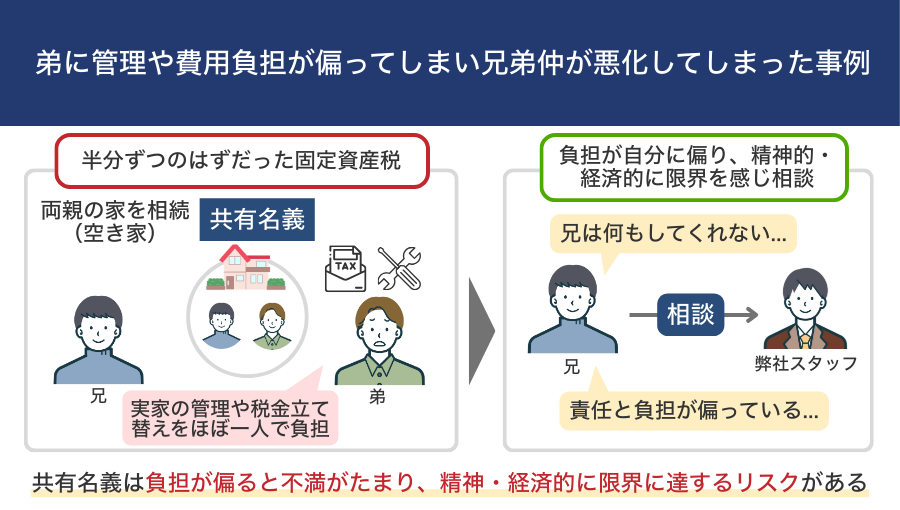 弟に管理や費用負担が偏ってしまい兄弟仲が悪化してしまった事例