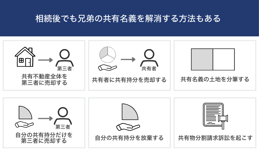 兄弟で共有名義になってしまった場合でも、相続後に共有状態を解消する手段は複数存在します。