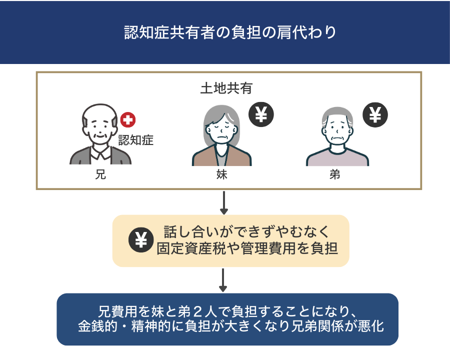 共有者の1人が認知症を患っており、固定資産税や管理費用の負担について話し合いができない状況でした。