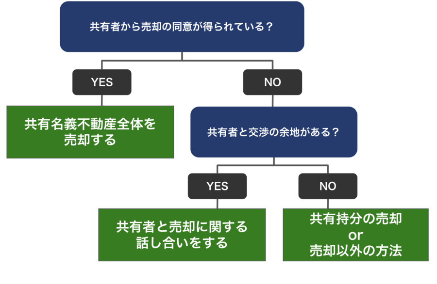 - 共有者からの同意がまだ取れていない場合:共有者と売却に関する話し合いをしてから売却方法を決める