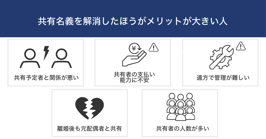 - 他の共有者の要望などを聞いたうえで、全員にメリットがある解消方法を選択しやすくなる