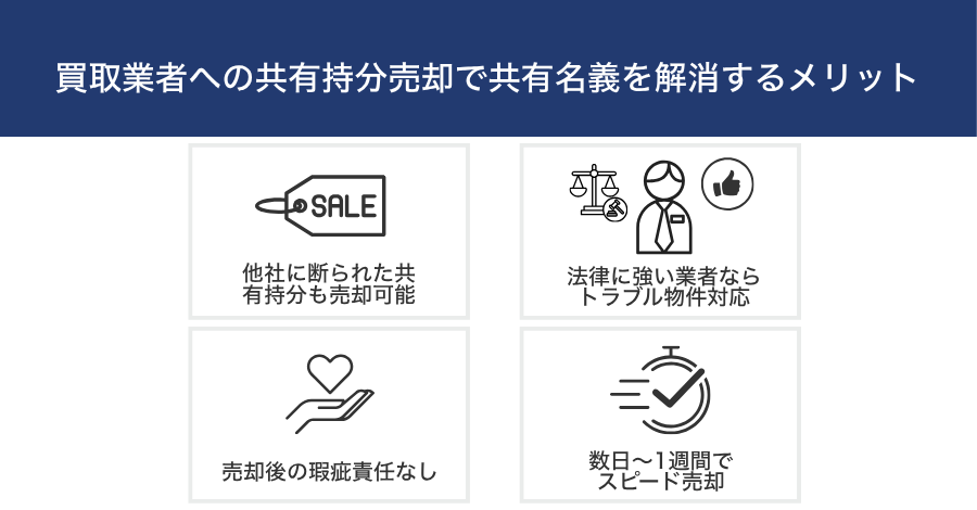 買取業者への共有持分売却で共有名義を解消するメリットは、次の通りです。
