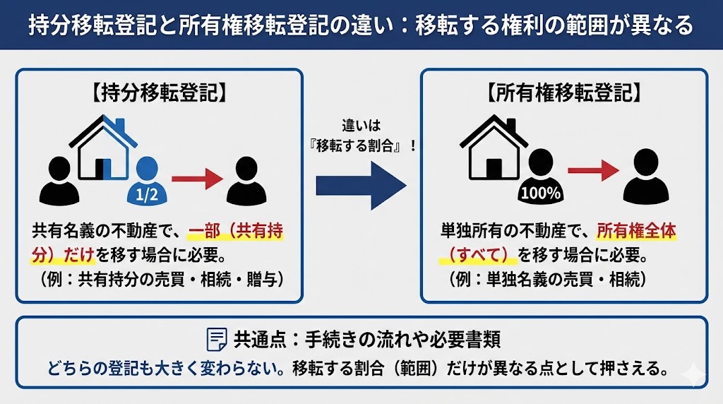持分移転登記と所有権移転登記の違い