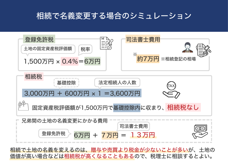 なお、以下のシミュレーションはあくまでも目安であるため、実際に土地の名義変更をする際には税理士に相談してみてください。