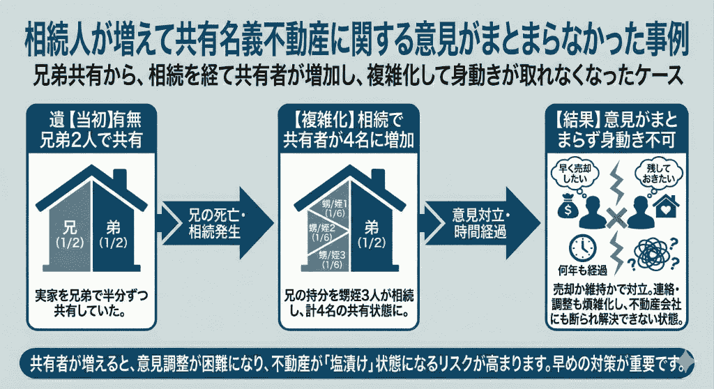 相続人が増えて共有名義不動産に関する意見がまとまらなかった事例