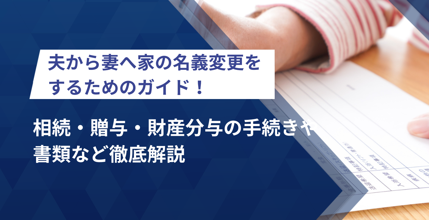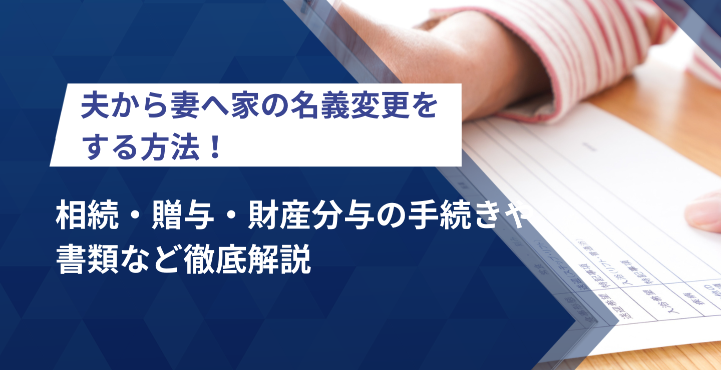 当記事では、夫から妻へ家の名義変更をするためのガイドとして、相続・離婚・生前贈与の3パターン別に名義変更の手続きを解説していきます。