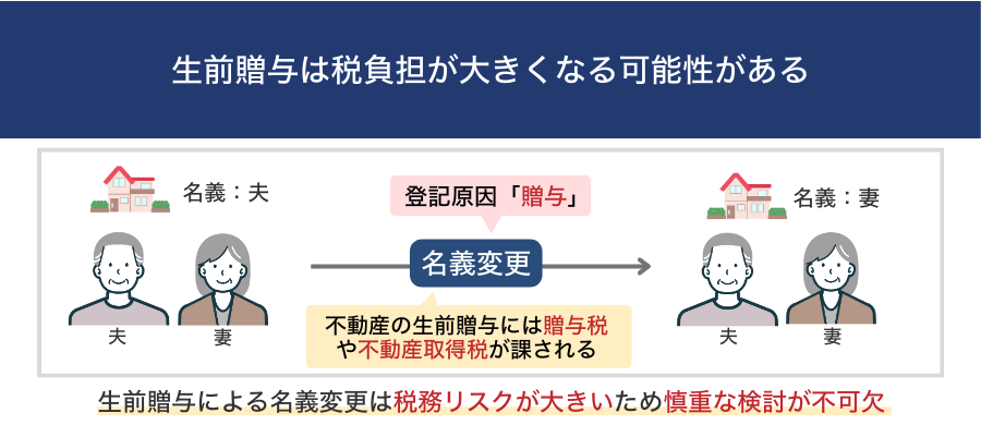 しかし、実務では税負担の大きさから、結果的におすすめできないケースが多いのが実情であるため、生前贈与については「名義変更できない」ではなく、「変更は可能でもおすすめはできない」というケースがあるのです。