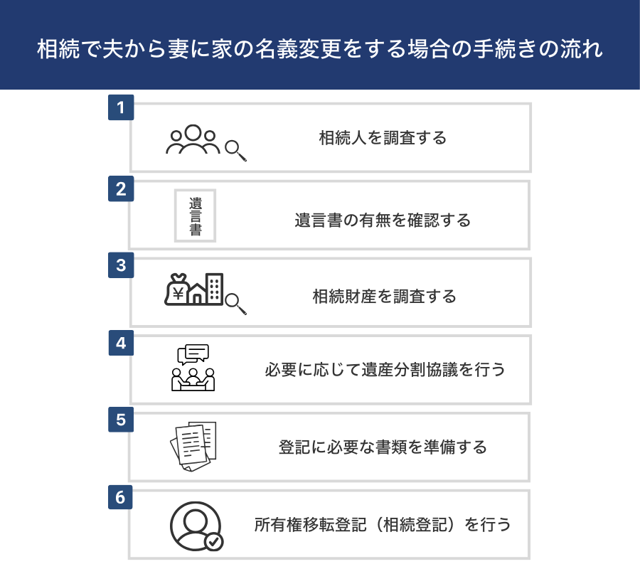 相続で夫から妻に家の名義変更をする場合の手続きの流れ