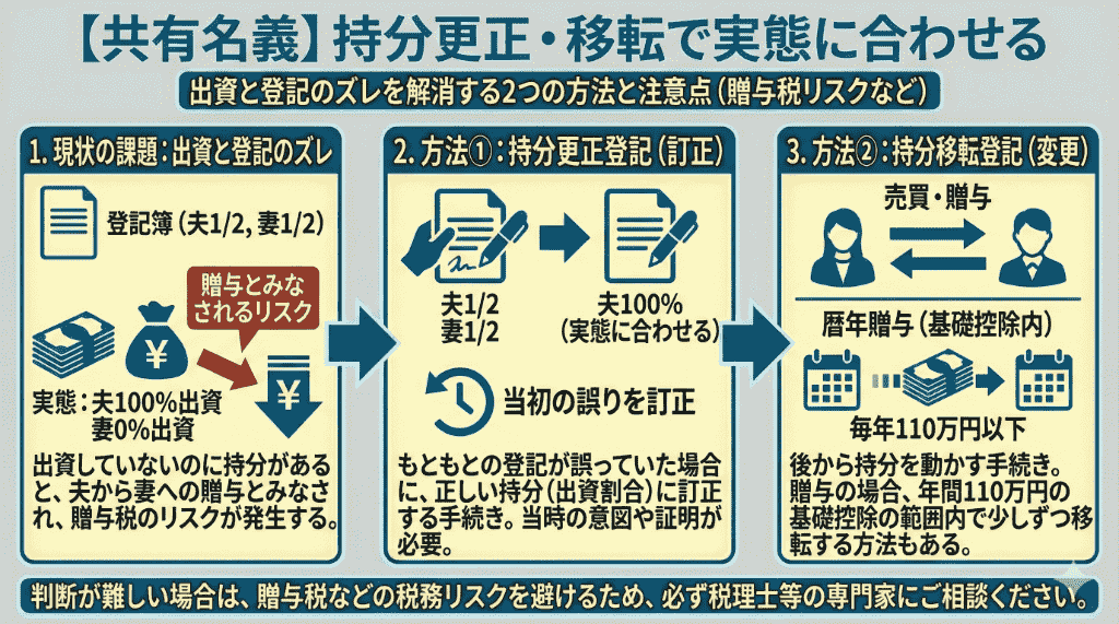 【共有名義】持分更正登記や持分移転で実態に合わせる