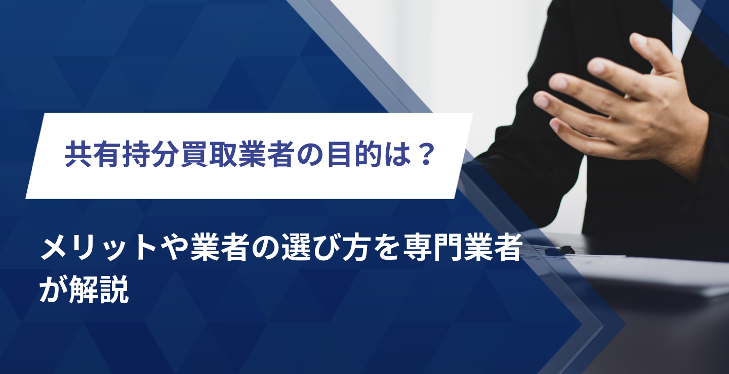 共有持分買取業者の目的は?メリットや業者の選び方を専門業者が解説