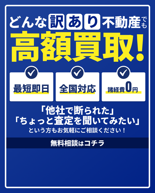 当社は訳あり物件専門の買取業者です。関東を中心とし、全国各地の訳あり物件の買取を行なっています。これまで多くの訳あり物件を買い取ってきたからこそ、データも十分にあり、適正な値段での買取が可能です。